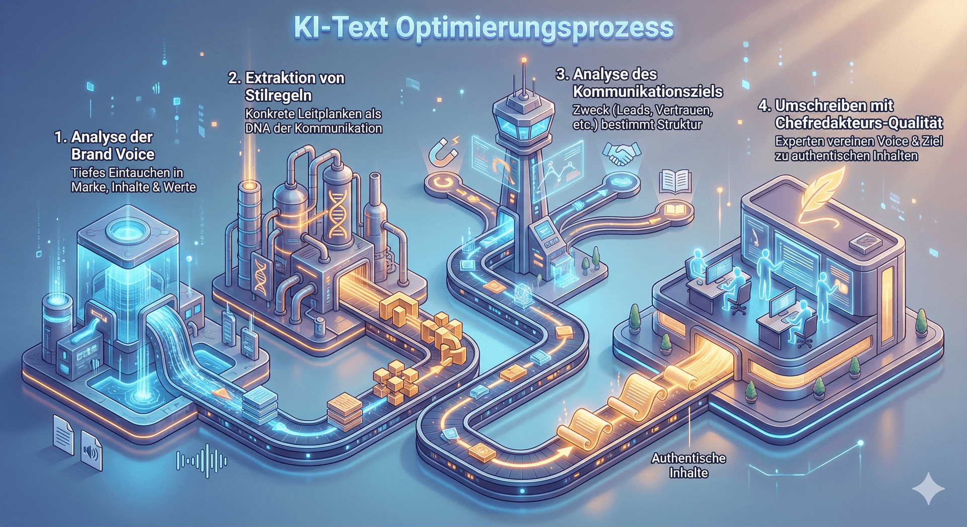 Brand Voice Injektion: Wir impfen den Text mit Ihrer unverwechselbaren Markenstimme, egal ob hochseriös, technisch-präzise, humorvoll oder empathisch.